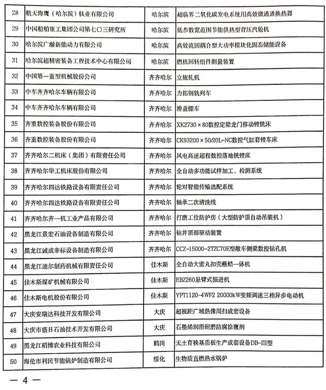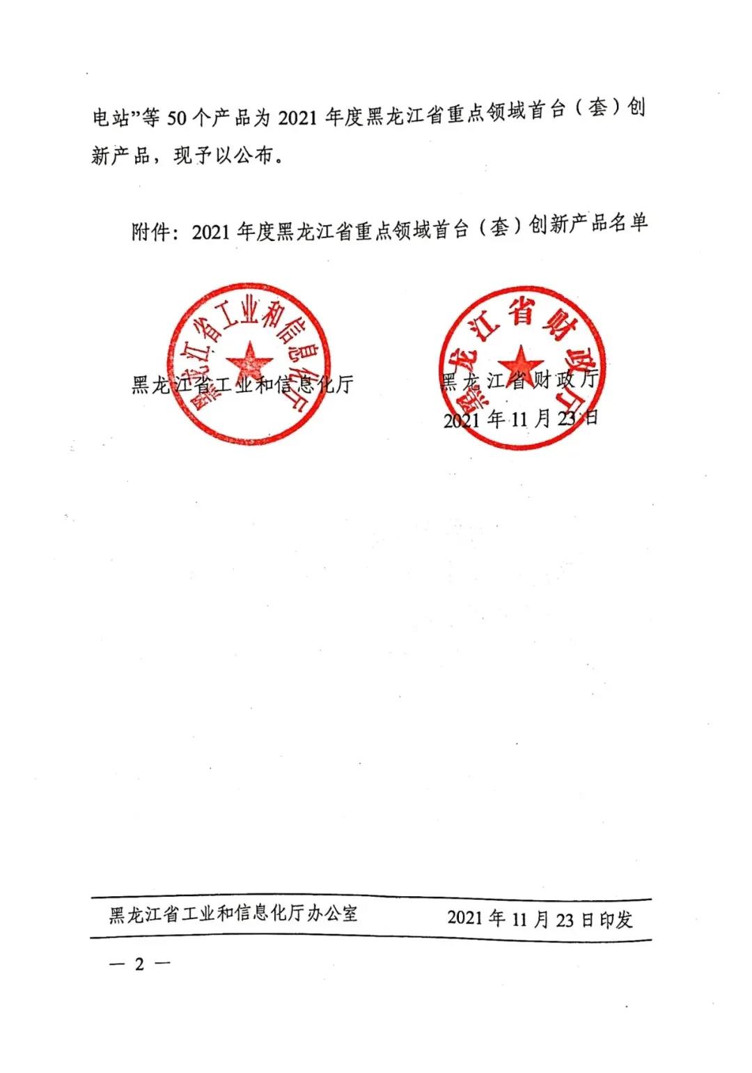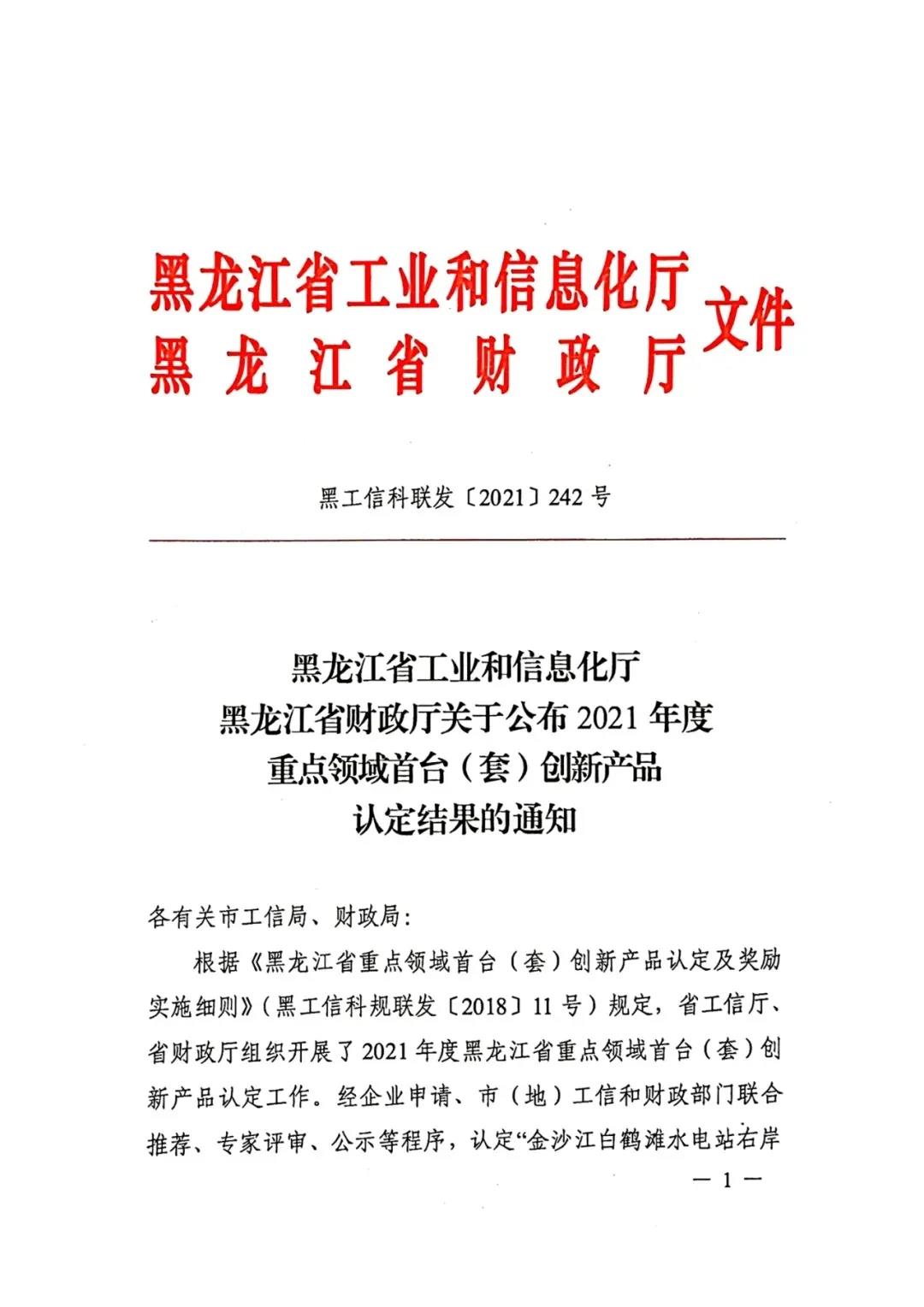 黑龍江省工業和信息化廳黑龍江省財政廳關于公布2021年度重點領域首臺(套)創新產品認定結果的通知