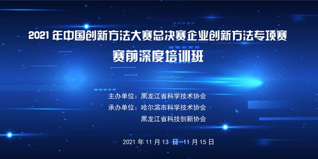 2021年11月13日-15日,由黑龍江省科學技術協會主辦,哈爾濱市科學技術協會、黑龍江省科技創新協會聯合承辦為期三天的黑龍江省2021年中國創新方法大賽總決賽企業創新方法專項賽賽前深度培訓班深度賽前培訓班勝利結束了。根據哈爾濱市疫情防控最新要求,培訓以線上形式進行。2021年中國創新方法大賽總決賽企業創新方法專項賽黑龍江省賽區競賽一等獎8支團隊成員和哈爾濱市推薦的1支 “直通車”團隊成員,9支團隊共計27人參加培訓。